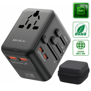 Miri&Ju 해외 여행용 GaN 초고속 충전 멀티어댑터, 1개, 블랙-25W