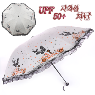 향긋한지구 UV차단 휴대용 레이스 3단 초경량 거꾸로 접이식 양산 우산 겸용