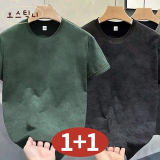 오스틱니 [1+1] 남성 여름 스웨이드 초특가 라운드넥 데일리 반팔 티셔츠