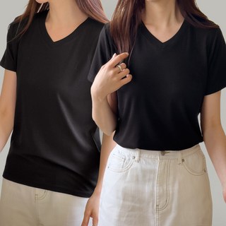 비오라 여성 반팔티 모달 이너티 반팔 브이넥 티셔츠