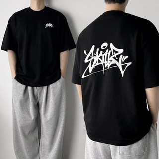 오프앤 국산 남녀공용 특양면 오버핏 그래피티 프린팅 빅사이즈 박스 반팔 티셔츠