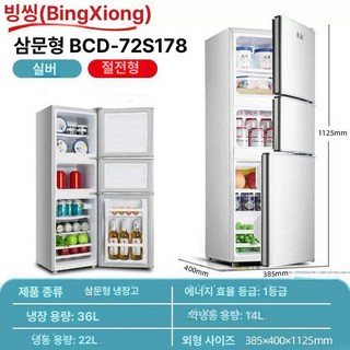 캠핑카용 냉장고 소형 캠핑 24V 차박 냉동고, 실버 3도어 178 절전형, 1L