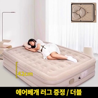 유니언 에어침대 캠핑 매트리스 자동펌프 내장형 원터치 에어매트 25cm, 더블