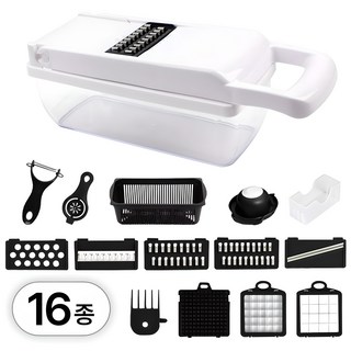 투데이리빙 16종 풀세트 다기능 깍뚝썰기 + 채썰기 + 슬라이서 채칼 감자 만능 슬라이스 오이 당근 양파 야채 무채 썰기 마늘 다지기 강판 노른자 분리기, 1세트, R98222B(화이트+블랙