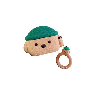 모자 쓴 강아지 에어팟 프로 케이스 + 미니어처 키링, 초록 모자 강아지, 1개