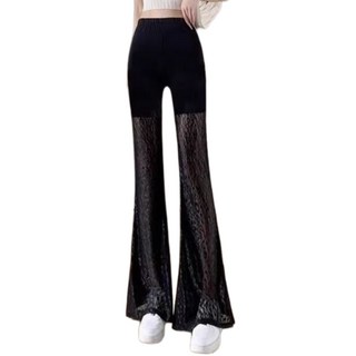 여성용 신축성 허리 블랙 레이스 스플라이싱 플레어 팬츠 댄스복 댄스 바지, 4XL