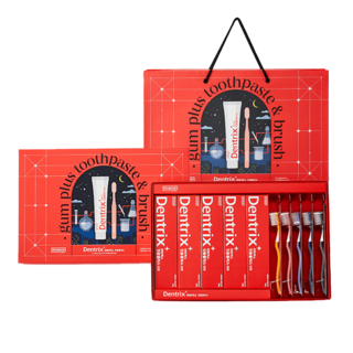 동국제약 덴트릭스 치약칫솔 선물세트(쇼핑백포함) (치약 160g*5+칫솔*5) 잇몸치약 잇몸케어 구취제거 잇몸약 에티즘함유 잇몸케어 프로젝트 마일드한 상쾌함, 1세트