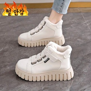Modern Fashion 여성 발편한 하이탑 벨크로 털 운동화 방한화 A03
