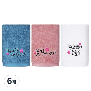 송월타월 럭키 캘리그라피 자수 세면타월 180g 30수 코마사, 랜덤발송, 6개