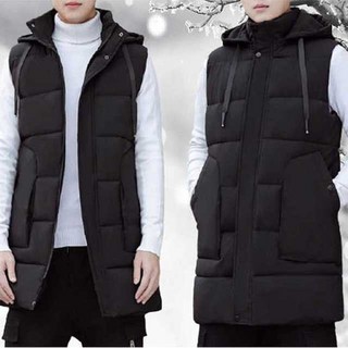 직장인 남자 롱패딩 블랙 후드 모자 패딩 조끼 스타일 nun*5564tT