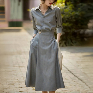 FINE ART 여성 더블버튼 플리츠 자켓 원피스 봄가을 청순 고급