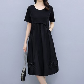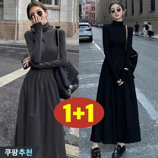 1+1 여성 햅번 날씬해보이는 맥시 원피스 봄 가을 편한 허리꼬임 심플 검정 a라인 스커트 매력 스판 루즈핏 패션 캐주얼 데일리 이어붙이다 플리츠 코디하기 좋은 이너 외출용 원피스