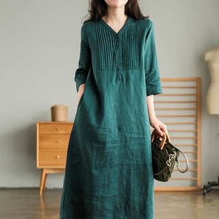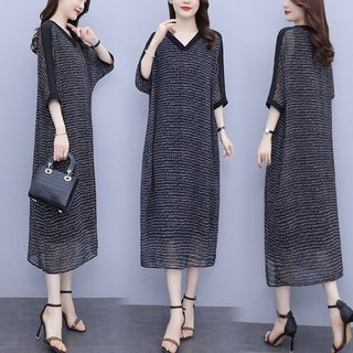 [바니드] 중년여성 봄여름 V넥 루즈핏 반팔 레터링 7부소매 롱원피스 0737