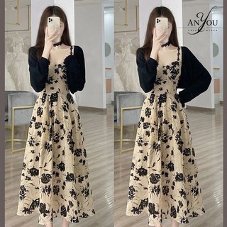 ANYOU 여름 원피스 롱원피스 가디건 코트+플라워 원피스 세트