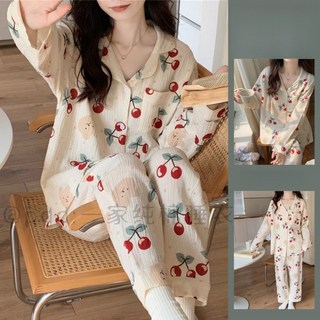 COSYEVNO 여성 잠옷 세트 봄 가을 프린트 러블리 패션 실내복 투피스