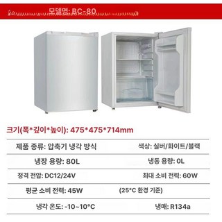 카라반 냉장고 차량용 캠핑카 화물 보관 소형 음식 전자레인지 캠핑용 캠핑 캠핑카냉장고 기숙사, 80L 단문 실버그레이 너비 깊이 높이 475x475x, 1L