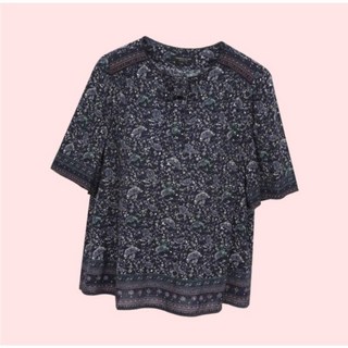 써스데이아일랜드 패턴 풀 오픈 반팔 블라우스 (T254MBL253W)