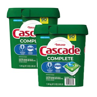 캐스케이드 컴플리트 엑션 식기세척기 세제 90회분 (Cascade Complete Dishwasher Detergent Actionpacs 90-count), 2개, 1.34kg