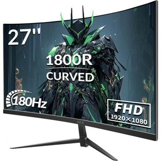 ZZA 게이밍 모니터 27인치 곡선형 180Hz| 165Hz|144Hz|1ms| 컴퓨터 FHD|1080P| 90% DCI-P3 100% sRGB PC FreeSync| HD, 27 inch, 1K 180HZ