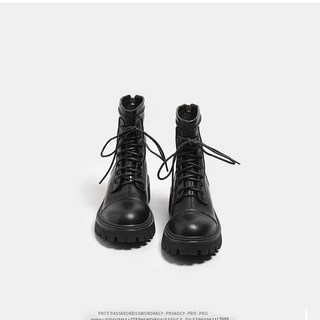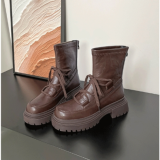 POMTOR 가을 겨울 여성 두꺼운 밑창 레이스업 숏부츠 슬림핏 부츠