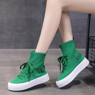 셀럽당 하이탑 신발 여 봄 가을 얇은 플랫 여름 날씬해 보이는 니트 부츠C01178