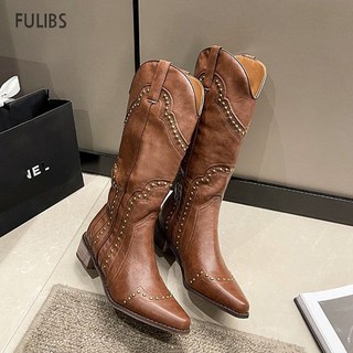 FULIBS 스터드 웨스턴 부츠 미들 부츠 빅사이즈 여성 부츠 260-225