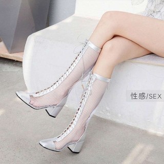 Cwadun 여성 패션 통기성 레이스 롱 부츠