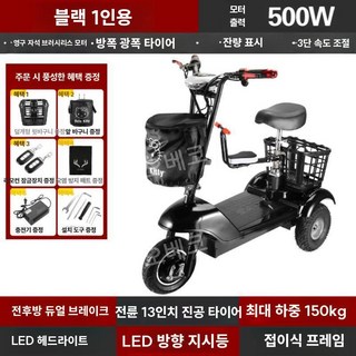 세발전기자전거 삼륜바이크 전동차 등하원 접이식 자토바이 소형, 24V, 블랙 1인