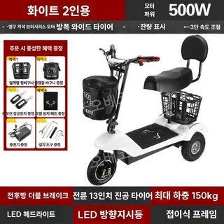 세발전기자전거 삼륜바이크 전동차 등하원 접이식 자토바이 소형, 24V, 화이트 2인