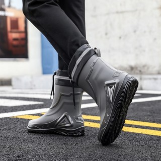 YANGTA 남성 미들 미끄럼 방지 방수 낚시 레인부츠 주방 레인부츠 세차 레인부츠