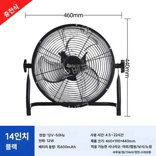 캠핑선풍기 무선냉풍기 충전식냉방기 서큘레이터 14인치 BLDC, 블랙 14인치
