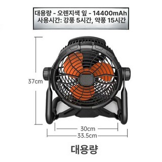 파워탱크 충전식 무선 국내산 캠핑용 캠핑선풍기 파워뱅크 써큘레이터, 대형 오렌지 날개