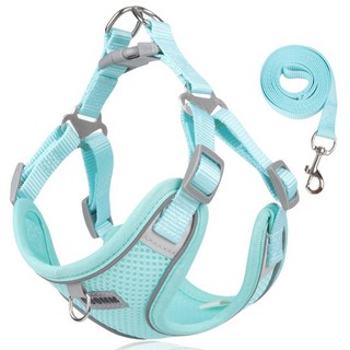 디아쿠아 강아지 고양이 겸용 야광 빛반사 메쉬 하네스+리드줄, 민트, 1개