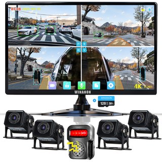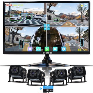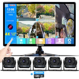WINANON 10.1인치 5채널 터치 화물차 블랙박스 4K 고화질 AI 생체인식 시스템 1080P 12V와24V 대형차 중장비 풀세트, 사은품 9종 세트, 128GB, 사각 카메라 5개+4K고화질+BSD