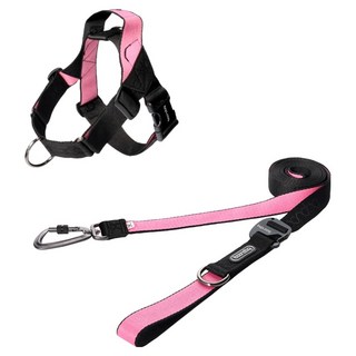 분독 강아지 플레이 카라비너 리쉬 2.5m + 0109 하네스 세트, 블랙핑크, 1세트