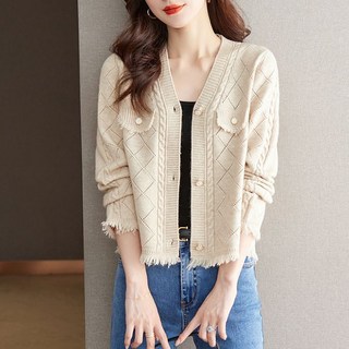 ORZQU 여성 봄가을 쇼트 니트 카디건 유행 스웨터 코트