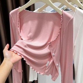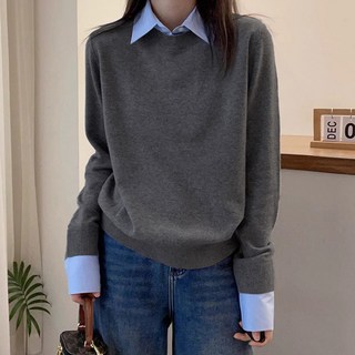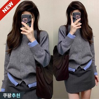 (2025/신상) 날씬해보이는 여성 레이어드 배색 니트 가디건 봄 가을 편한 이른 봄 코디 보송 고급 디자인 회색 간절기 이너 루즈핏 얇은 스웨터 티 데일리 모더니티 카디건 77