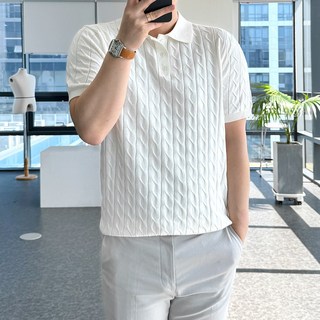 룩플레인 고급스러운 여름 린넨 케이블 반팔 니트 카라 티셔츠 6color