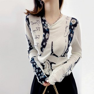 오여사점빵여성 시스루 긴팔티 데일리 니트 루즈핏 티셔츠