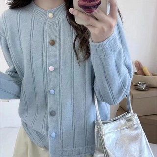 2025 고급 니트 스웨터 봄 가을 여성용 워스티드 가디건 라운드넥 니트 단색 상의