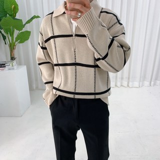 스트릿제이 체크 카라 반집업 니트
