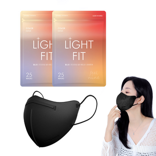 필나인 라이트 핏 2D 보건용 마스크 KF94 대형, 25매입, 2개, 모던블랙