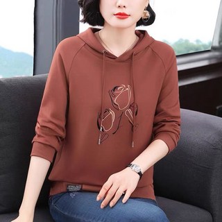 AOKADA 여성 가을 루즈핏 후드티 플라워 프린팅 엄마 상의
