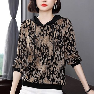 AOKADA 중년 여성 루즈핏 자카드 후드티 봄 가을 엄마 긴팔 티셔츠