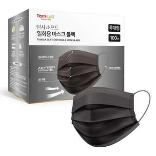 탐사 소프트 쉽게 뽑아쓰는 일회용 마스크 특대형, 블랙, 1개, 100개입