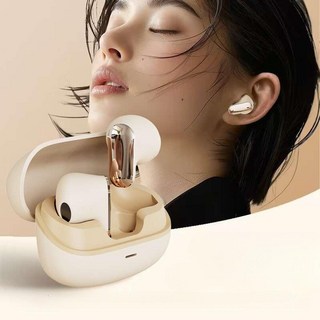 와피크 노이즈 캔슬링 오폰형 무선 블루투스 이어폰 R6 BT5.4, 베이지