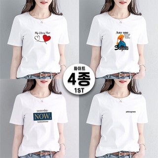 오스틱니 4종세트 100kg까지 빅사이즈 완전 편한 프린트티 반팔 티셔츠 특가상품 여성 여름 1+1+1+1 라운드 스판 루즈핏 무지 영문티 캐릭터 달콤한 캐주얼 티 반팔티 4P