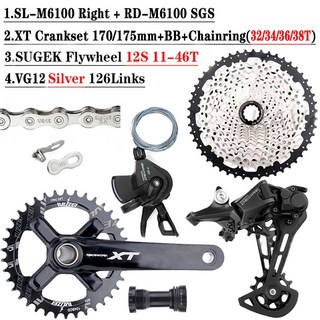 DEO M6100 1X12 세트 XT 실버 카세트 SUNSHINE HG 12S 체인 52T 그룹 50 SHIMAN 변속기 크랭크 속도 자전거 시프트 46, 32T, 170mm, Cassette 46T