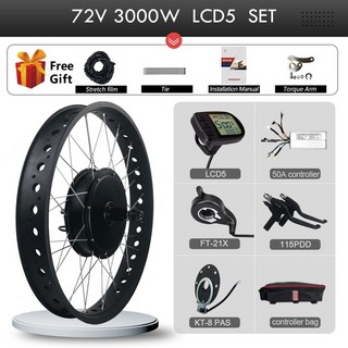 전기 자전거 모터 키트 팻 휠 스노우 바이크 키트 후면 카세트 허브 변환 키트 72V 3000W 24 인치 26 인치, LCD5 Set+Rear wheel 170mm+20, 1개