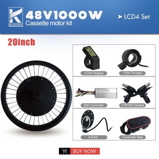 전기자전거키트 배달전기자전거 전기자전거키트풀세트 체인 전기펫바이크전기 자전거 변환 키트 kt fat bike 20 26 인치 4.0 타이어 48v 1000w 리어 카세트 휠, 48v LCD4 20인치